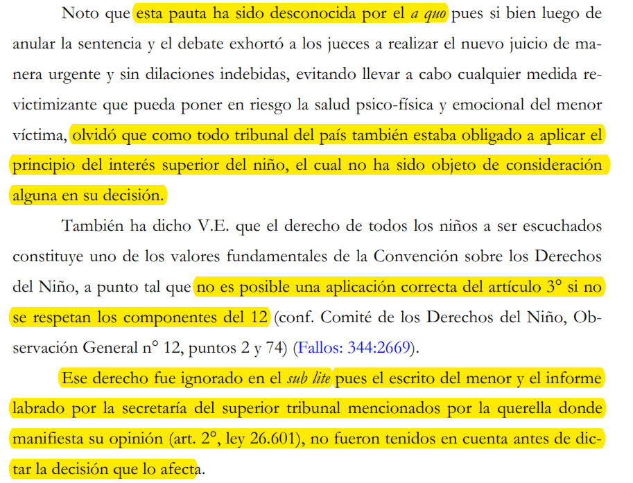Y el argumento demoledor: “muchachos, se olvidaron del interés superior del niño” al resolver (sobre todo porque hubo escrito del niño e informe de secretaría olímpicamente ignorados).