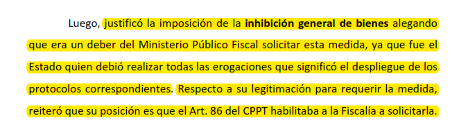a) “MPF vos no representás al Estado en las acciones civiles en el proceso penal, para eso está la Fiscalía de Estado, por ende, no podés pedir esto”.
