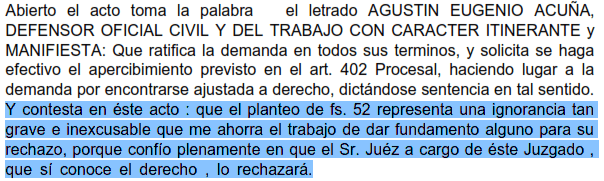 Caso simple. Un proceso de alimentos en contra del progenitor y la abuela, en el que iba por la parte actora. En eso, grande fue la sorpresa cuando me encuentro con un planteo de acto procesal inexistente.