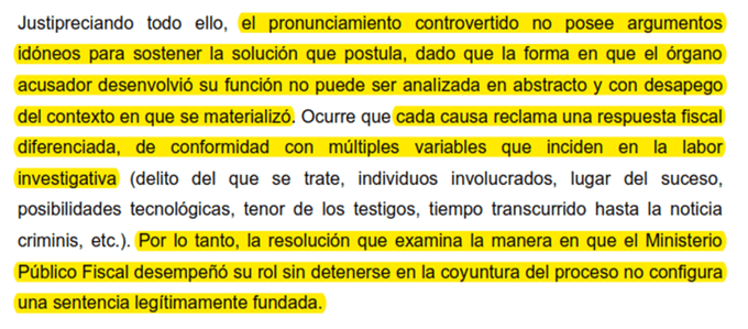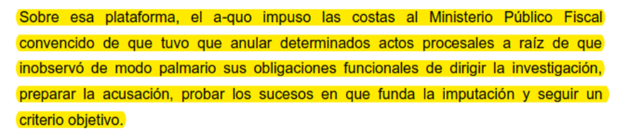 El otro argumento es: «el MPF consintió la decisión de anular todo, no puede venir a pretender que revise las costas» (sí, medio débil el argumento, pero bue…).