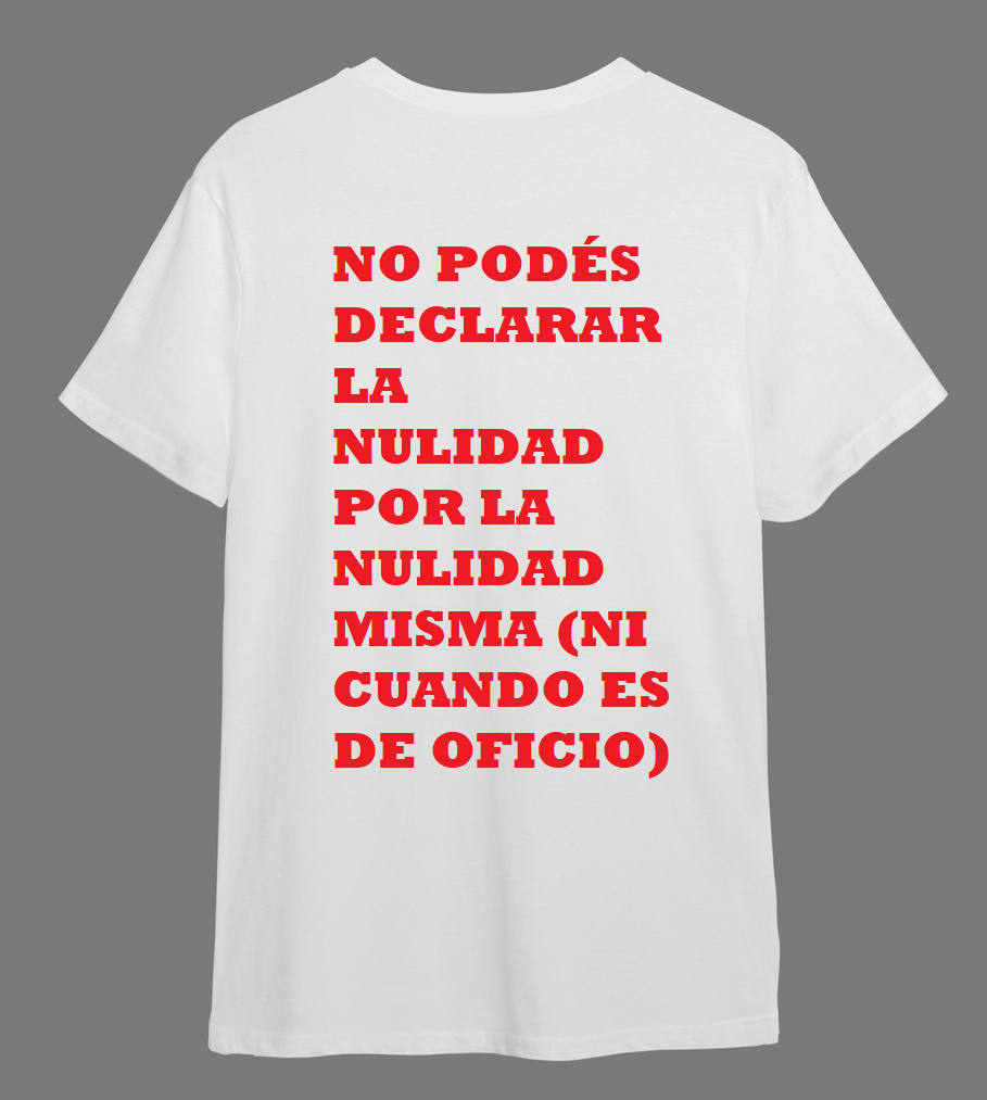 ¿Cómo terminó todo? Con la corte ofreciendo esta remera a la cámara que tiene una de las frases más usadas en clases de derecho procesal al mismo tiempo que olvidadas en tribunales…