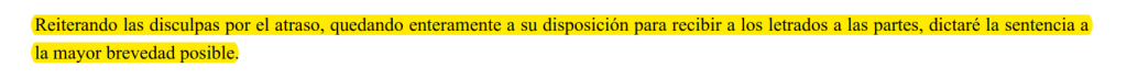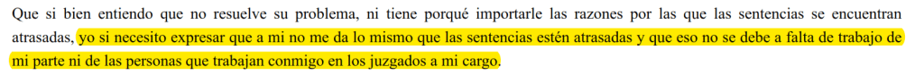 7. Acá también ataja el posible argumento de que a los jueces les gusta subrogar. En un sincericidio, reconoce que preferiría ocuparse de lo suyo y tener todo prolijito. También dice que no renuncia a la subrogancia porque los demás están igual. El reconocimiento de la crisis generalizada.