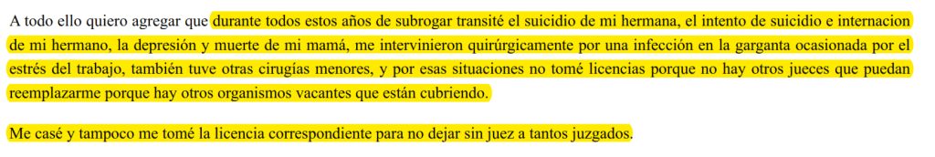 4. Esta parte casi me hace llorar. Es el reconocimiento de la vulnerabilidad absoluta. Detrás de los jueces hay seres humanos con problemas tan humanos como los que tienen todos los ciudadanos. Obvio, agrega el “y estuve a pesar de eso poniéndole el pecho a las balas”.