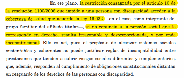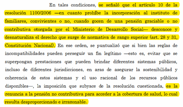 O sea, está todo bien con las reglas de incompatibilidades para evitar superposiciones (fin legítimo), pero la resolución te impone que renunciñes a la pensión para que obtengás cobertura de salud. Sí, desproporcionado e irrazonable (absurdo diría yo).