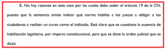 ¿Cómo terminó? Obviamente con un recurso de casación. ¿Argumentos? Todos old syle, bien positivistas, como este, anclado en el maravilloso artículo 19 de la Constitución Nacional:
