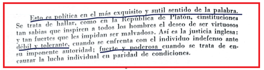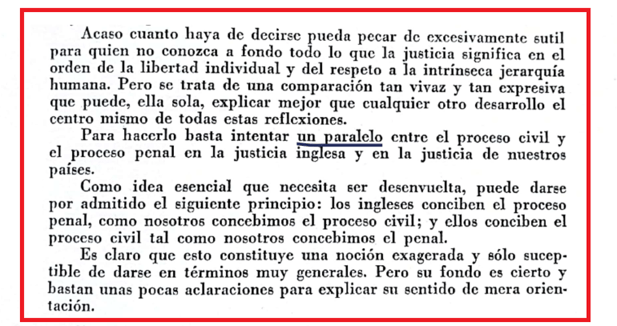 En “El sentido político de la justicia inglesa” Couture dice que la justicia inglesa tiene la política de la libertad y hace una hermosa comparación entre los procesos civiles y penales de ellos y de “nosotros”.