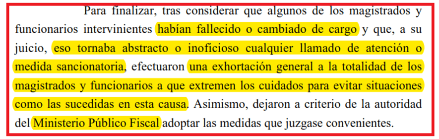 Ojo, también tira una exhortación general a jueces y funcionarios, se lamenta que muchos ya no están para llamarles la atención y le dice al MPF: “fijáte qué hacés”.