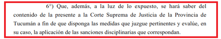 Y también, ya que estaban, los cortesanos le dijeron a la corte tucumana: “Che, fijáte si sancionás a alguien por esto”.